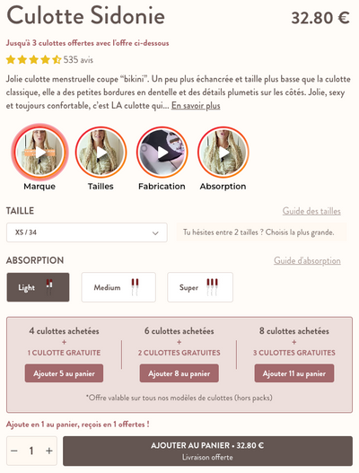 - Ajout d’un wording clair précisant le nombre de culottes nécessaires pour bénéficier de l’offre.