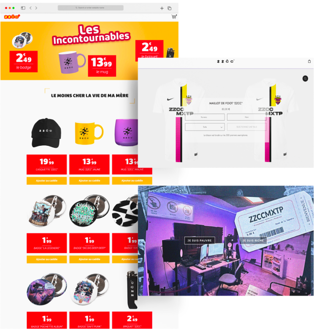 Cette partie du site internet adoptera les codes du hard discount pour présenter les produits les moins chers du catalogue (pins, stylo, mugs...). Un logo et une identité graphique adaptée seront développés pour plonger le visiteur dans une expérience très (très) cheap.